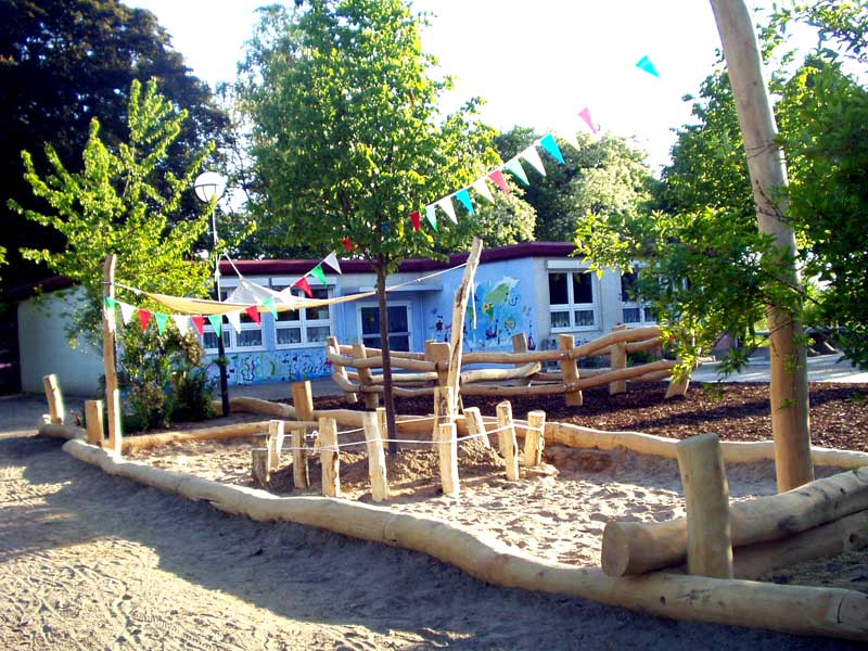 Drei Tage halfen rund 20 Eltern, Lehrerinnen und Erzieherinnen sowie eine ungezählte Anzahl von Schülern das Sandkastenschiff und das Kletterboot zu bauen, Sand und Mulch zu schaufeln sowie eine Reihe von Pflanzen zu setzen. Die Mühe wurde belohnt durch die planmäßige Fertigstellung und Abnahme vor dem Tag der Offenen Tür am Samstag, dem 10.6.06.