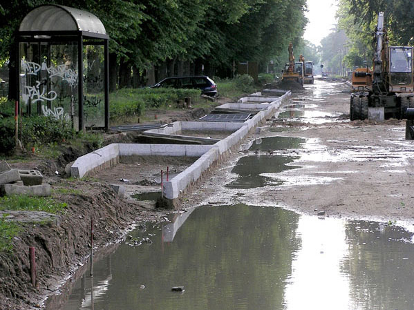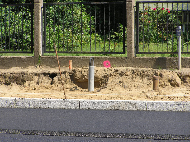 - die Kabel für die Lampenmasten der neuen Gehwegbeleuchtung auf der Nordseite der Straße (Bild 12) ragen vom Bahnhof bis zum Grüntaler Weg auch schon aus der Erde.