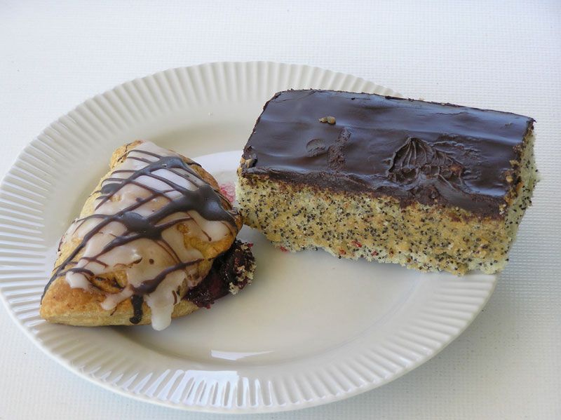 Eine humorvollen Beitrag zur Sanierung der Bahnhofstraße leistet die Bäckerei Benndorf in der Bahnhofstraße, die unter den Behinderungen für die Anfahrt ihrer Kunden doch zu leiden hat. Sie hat, zur Situation passend, neue Namen für zwei ihrer Gebäcke vergeben: „Asphaltkuchen“ und „Parktaschen“ (Bild 13 und 14).