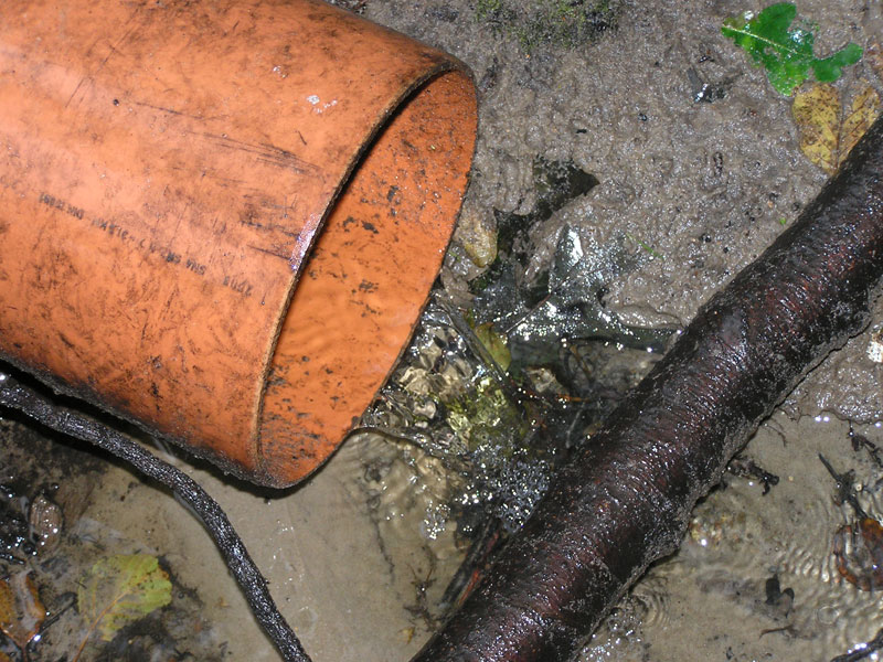 Das Regenwassersammelbecken am Ende der Mozartstraße hat seine Feuertaufe bei den sintflutartigen Regenfällen am 22. Juli offensichtlich bestanden. Eine Stunde nach Regenende war das meiste Wasser schon durchgelaufen. Es lief nur noch wenig Wasser aus dem Abflussrohr ins Sydower Fließ (Bild 6-15).