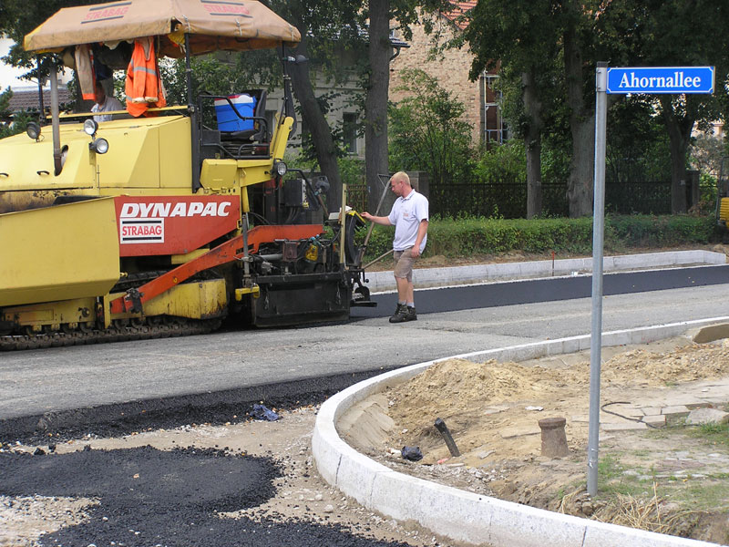 Nur das Wüten eines Maschinenschadenteufels könnte die beteiligten Mannschaften der Strabag, die Erdbauer und die Asphalteure daran hindern, am 23. oder 24. August zu melden: Asphalt auf der sanierten Bahnhofstraße Biesenthal erreicht Steinstraße – zweiter Rekonstruktionsabschnitt fertiggestellt.