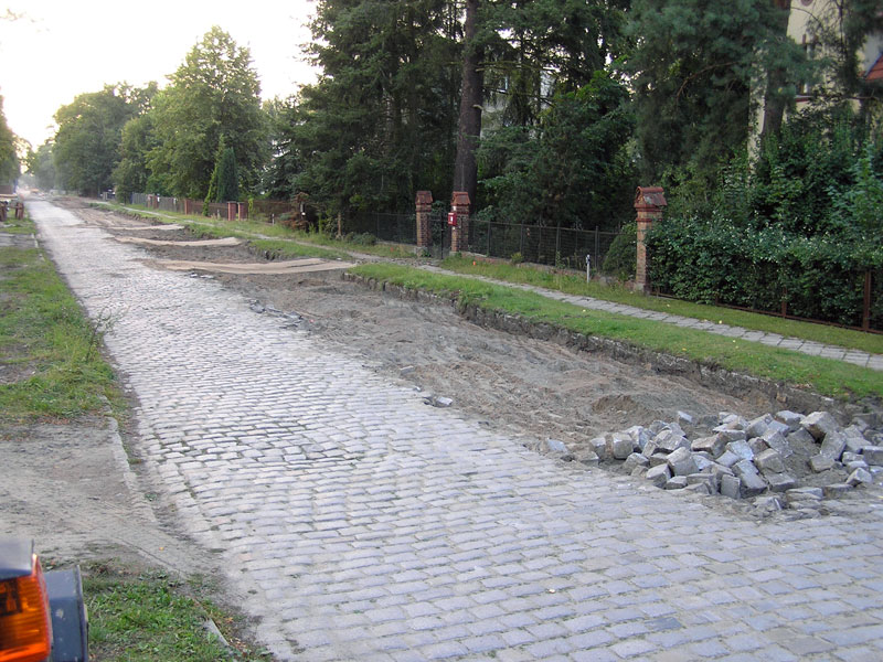 Schlussbemerkung: auf fast der gesamten Länge zwischen Steinstraße und Buchenallee ist der alte Gehweg entfernt und dass Bett für den neuen ausgekoffert (vgl.Bild 7-2).
