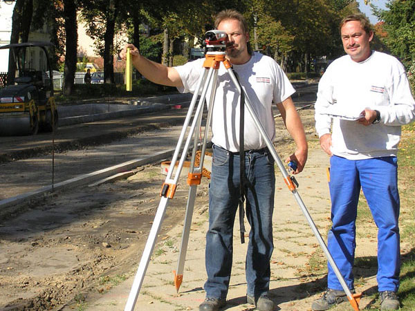 Der rund 460 Meter lange letzte Sanierungsabschnitt zwischen Steinstraße und Schubertstraße lag an diesem Tag ausgekoffert, mit der Schotter-Frostschutzschicht und den Bordsteinkanten versehen bereit für die Arbeit der Schotterverlegemaschine und ihrer hier schon zum dritten Mal aktiven sechsköpfigen Mannschaft.