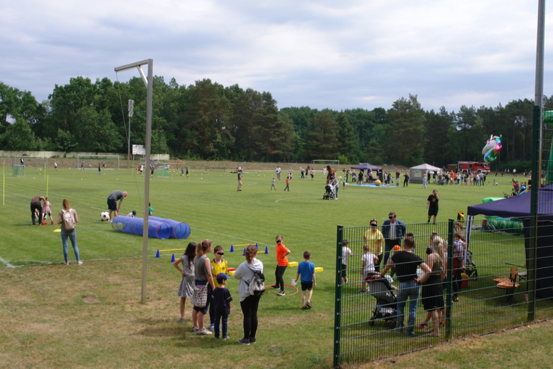 Es wartete wieder jede Menge Spiel und Spaß, wie zum Beispiel der berühmte Gummistiefelweitwurf, eine Tischtennis-Ballmaschine, Ponyreiten, der Mitmachzirkus, die Schmink- und Bastelstrecke, ein Kinder-Parkour für die ganz Kleinen, Torwandschießen, ein Geschicklichkeits-Parkour für die Größeren und eine Hüpfburg. Ein besonderes highlight war dieses Jahr eine Kombination aus Kletterwand und Hüpfburg. Beim Wasserbombenwerfen konnten sich die Kleinen bei strahlendem Sonnenschein eine kleine Abkühlung holen. Viele Abteilungen des SV Biesenthal stellten sich vor und so konnte Volleyball, Tischtennis, Fußball, Kindersport und auch Badminton geübt werden. Mal sehen, welche kleinen Talente sich inspirieren ließen und unseren Verein vielleicht in Zukunft bereichern werden.