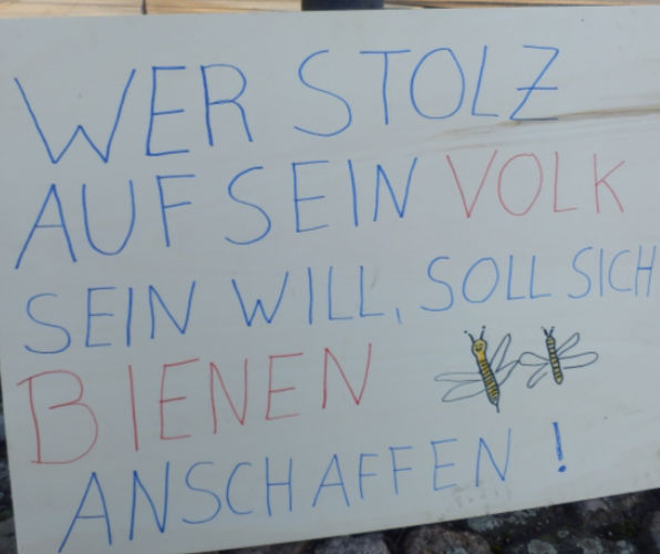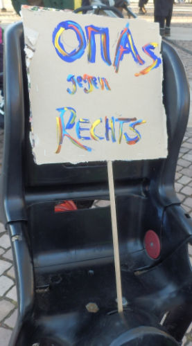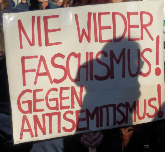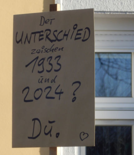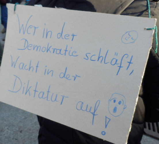 In den Redebeiträgen und auf selbstgemalten Schildern machten die Anwesenden deutlich, dass es jetzt wichtig ist, sich jeder Art von Menschenverachtung, Antisemitismus und Rassismus entgegenzustellen. Wie das konkret aussehen kann, war anschließend das Thema vieler Gespräche bei Punsch und heissen Waffeln.