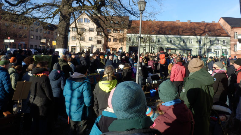 Am vergangenen Sonntagnachmittag versammelten sich mehr als 300 Menschen in Biesenthal in der Breiten Straße. Dort gedachten sie anlässlich des Jahrestages der Befreiung von Auschwitz den Opfern der Shoa. In den Redebeiträgen der Initiative Bunt statt Braun Biesenthal ging es um die lange Geschichte der jüdischen Bevölkerung in Biesenthal, die vom deutschen Nationalsozialismus komplett ausgelöscht wurde. In der Breiten Str. 59 wohnte die fünfköpfige Familie Borchert und betrieb dort auch einen Milchladen. Sie wurden von der Gestapo verhaftet und in Auschwitz ermordet.