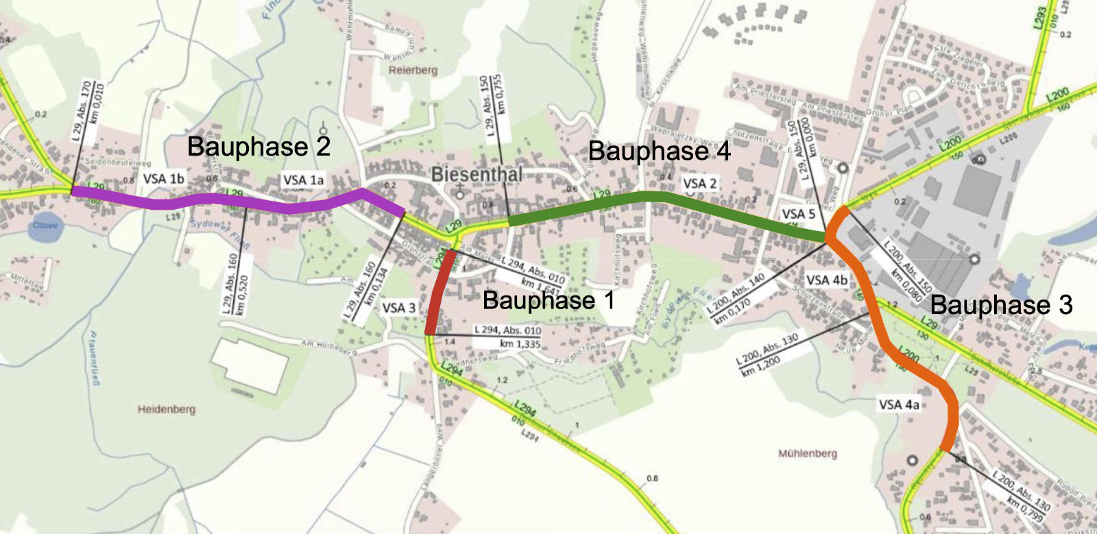 zwischen Knotenpunkt L 200 / L 29 bis zur Ecke Grünstraße der Bahnhofstraße und August-Bebel-Straße