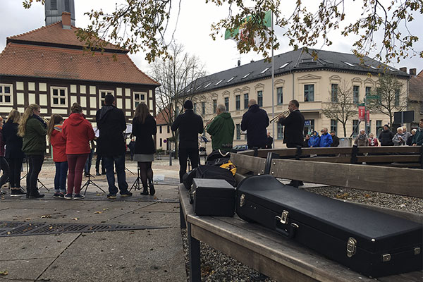 Zur Feier des 500. Reformationsjubiläums am 31. Oktober 2017 trug der Posaunenchor der Evangelischen Gemeinde die Kirche auf den Marktplatz. Unter Leitung von Elke Zenker spielten die Musiker Choräle, die alle von Luther selbst geschrieben worden sind. Zur historischen Uhrzeit um 15.17 erklang der Choral „Ein feste Burg ist unser Gott”. mehr...