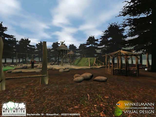 Blick vom Spielbereich für die Älteren auf den Zentralbereich