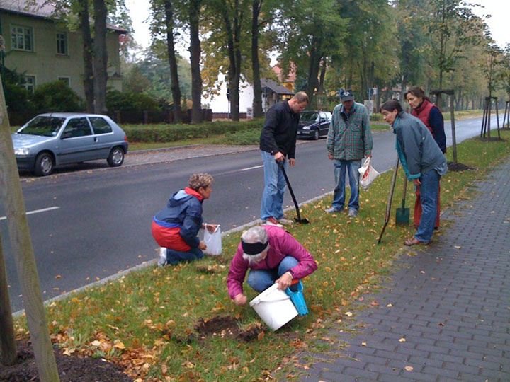 Am 3. Oktober 2009 trafen sich ca. 50 Biesenthalerinnen und Biesenthaler, um die Bahnhofstraße mit Krokussen, Tulpen und Osterglocken zu verschönern.